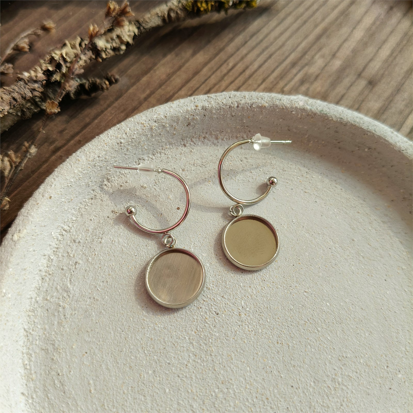 Пусеты с сеттингом предназначен для заливок с небольшим слоем, это могут быть сухоцветы, элементы стимпанк, наклейки и т.д. У многих мастеров сеттинги - любимый вид украшений, так как они просты в изготовлении и имеют низкую себестоимость. Основа из нержавеющей стали, внутренний диаметр сеттинга 12 мм, общая длина 34 мм.